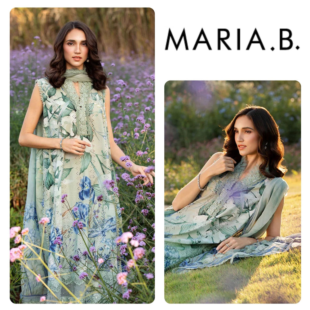 MariaB MPrint GREEN Chikankari Embroidered 3 Piece Lawn Dress - 1496