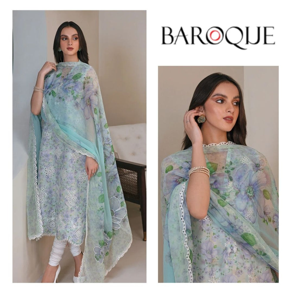 Baroque Chikankari Embroidered & Printed Lawn 3 Piece Dress - 1297