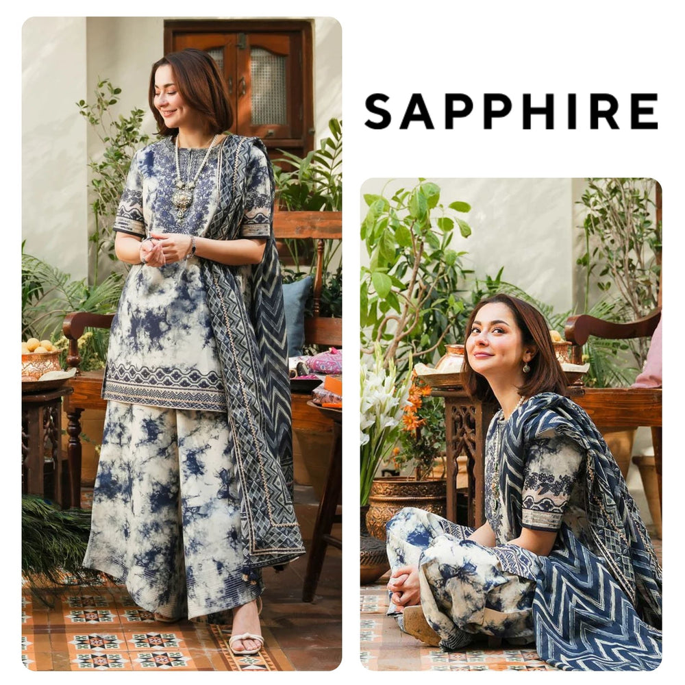Sapphire Embroidered & Printed Lawn 3 Piece Dress- 10541
