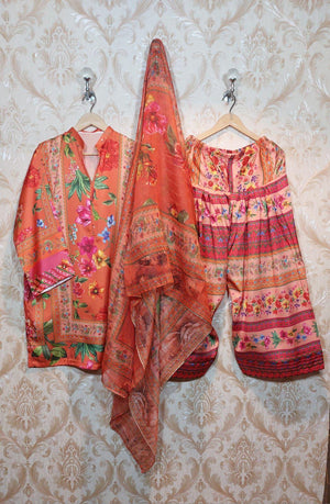 Designer Shamoz Silk Digital Print Farshi Shalwar 3 Piece Dress - STITCHED - STANDARD SIZE - 10607
