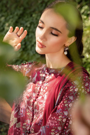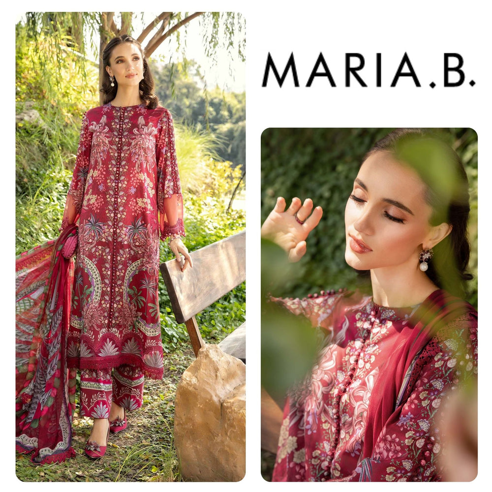 MariaB RED Embroidered & Printed Lawn 3 Piece Dress - 1481