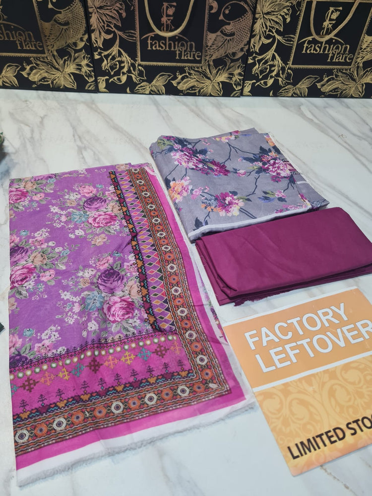 Original Factory Leftover Branded 3 Piece Digital Print Pure Lawn Dress - 10617