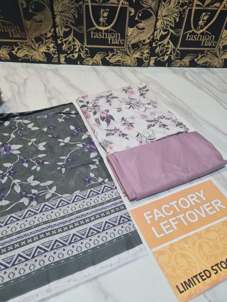 Original Factory Leftover Branded 3 Piece Digital Print Pure Lawn Dress - 10619