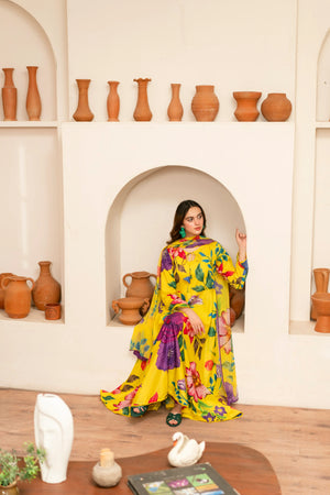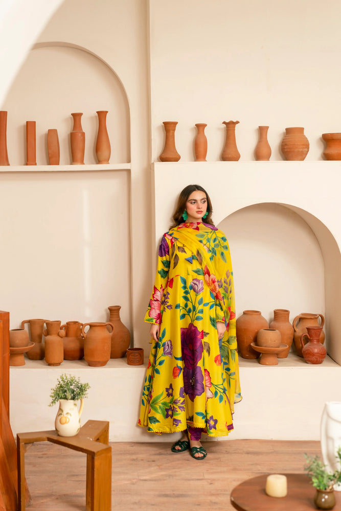 Original Factory Leftover Feathers Digital Print 3 Piece Lawn Dress - 10554