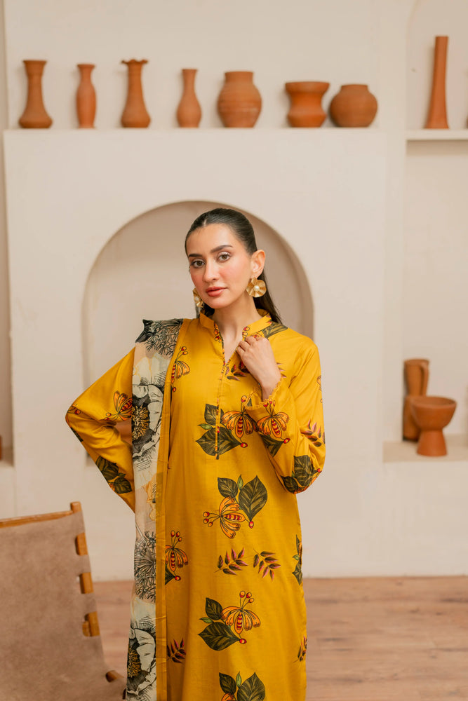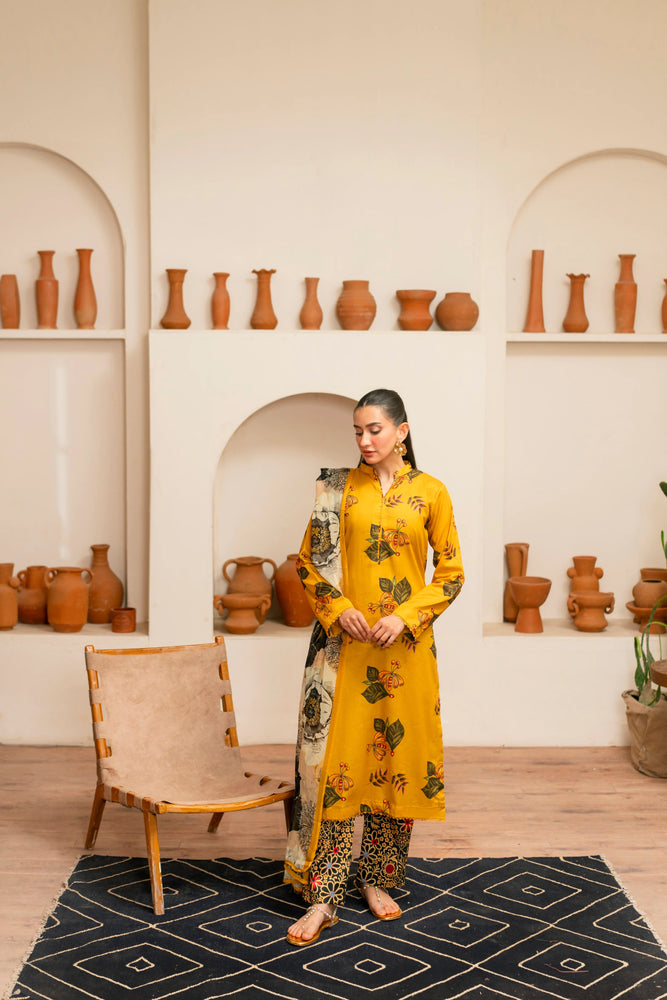 Original Factory Leftover Feathers Digital Print 3 Piece Lawn Dress - 10558