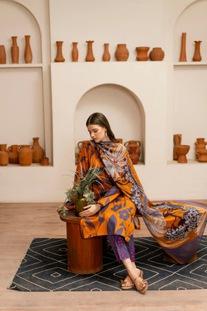 Original Factory Leftover Feathers Digital Print 3 Piece Lawn Dress - 10562