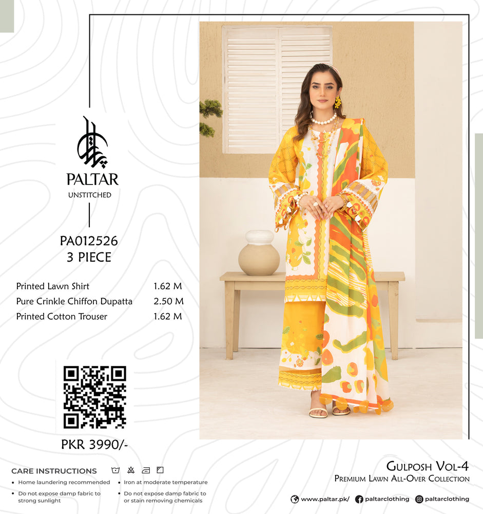 Original Factory Leftover Paltar Digital Print Pure Lawn 3 Piece Dress - 1254