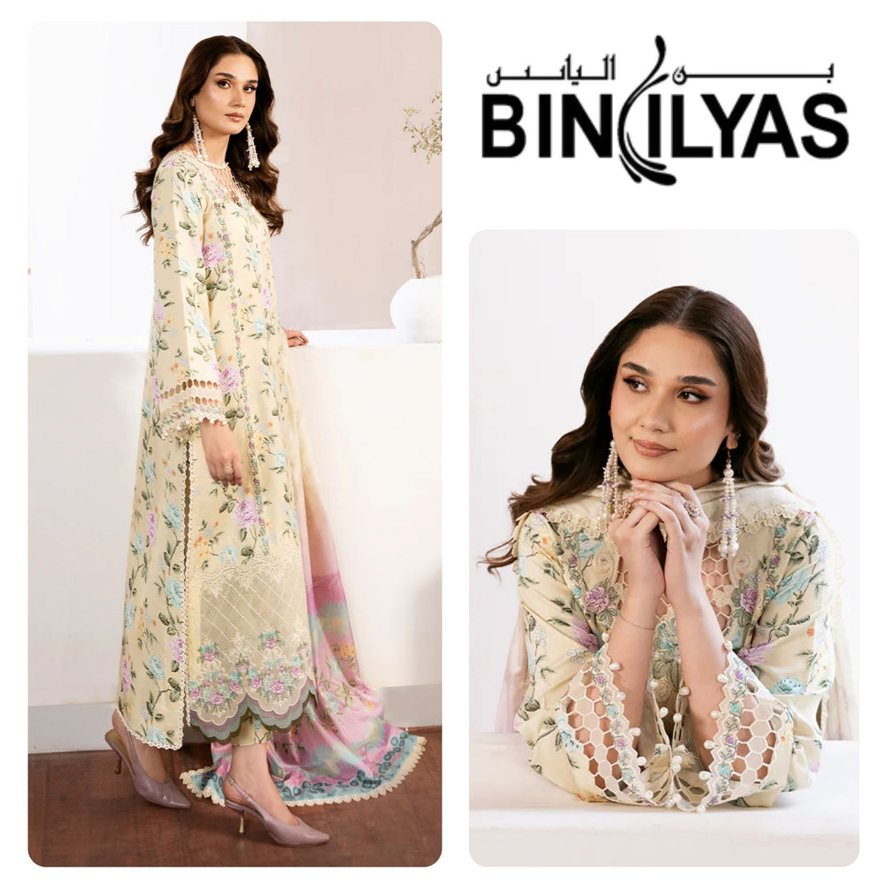 Bin Ilyas Digital Print & Embroidered Lawn 3 Piece Dress- 1508