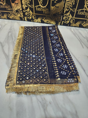 Chiffon Chunri Screen Print & Mirror Dupatta - 0062
