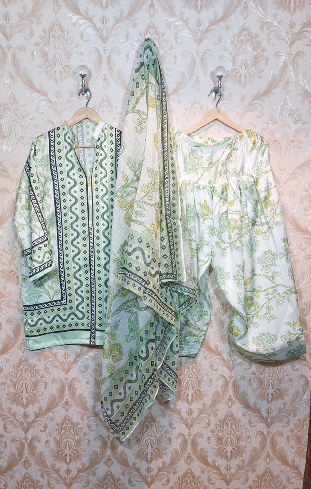 Designer Shamoz Silk Digital Print Farshi Shalwar 3 Piece Dress - STITCHED - STANDARD SIZE - Z322