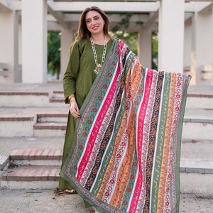 Original TNG PHOOL STRIPES ODHNI Swiss Lawn Calligraphy Digital Print Dupatta - 0606
